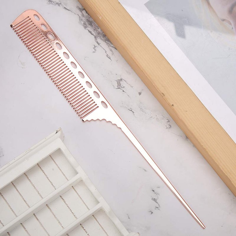 Rose Gold Comb,Tail Pin Tail Comb, Portable Rat Tail Comb Aluminum Pintail Comb Hair Barber Comb Teasing Combs For Men (3 Pack) (Rose Gold)