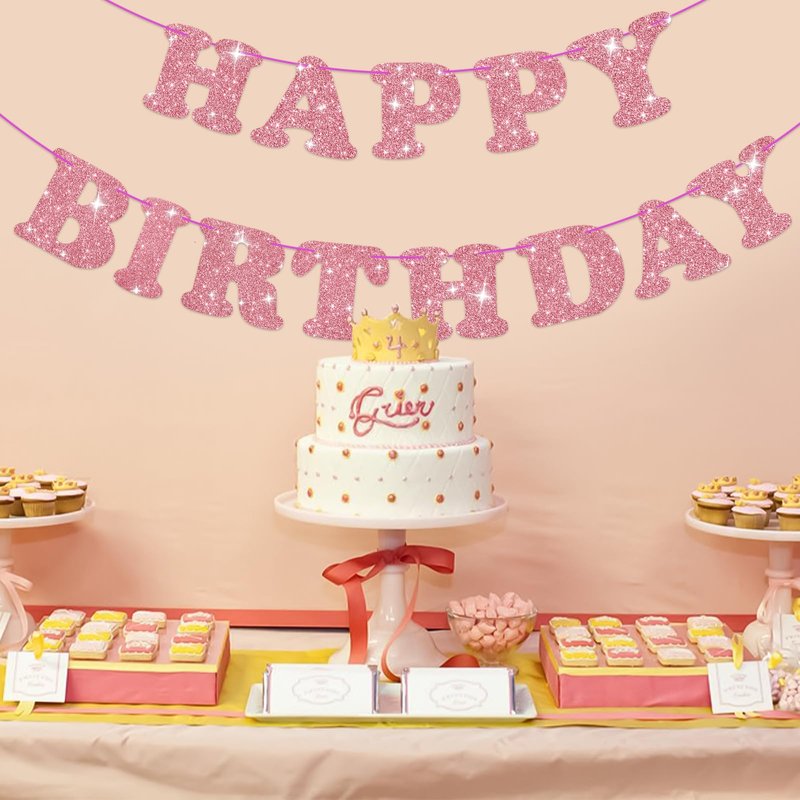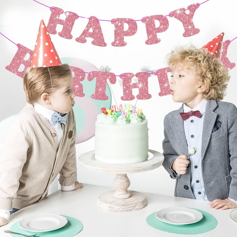 - Rose Gold Party Supplies: Our rose gold birthday banner have strings on both ends for easy hanging, glitter birthday banner make your birthday party decorations unique, celebrate with family, kids, friends and classmates with this rose gold happy birthday banner