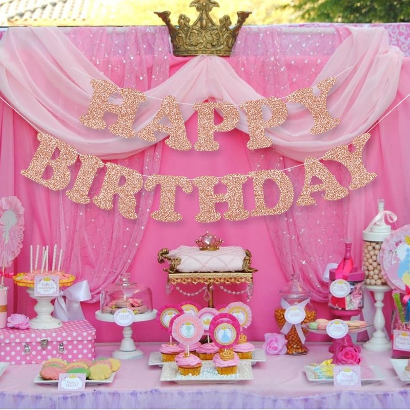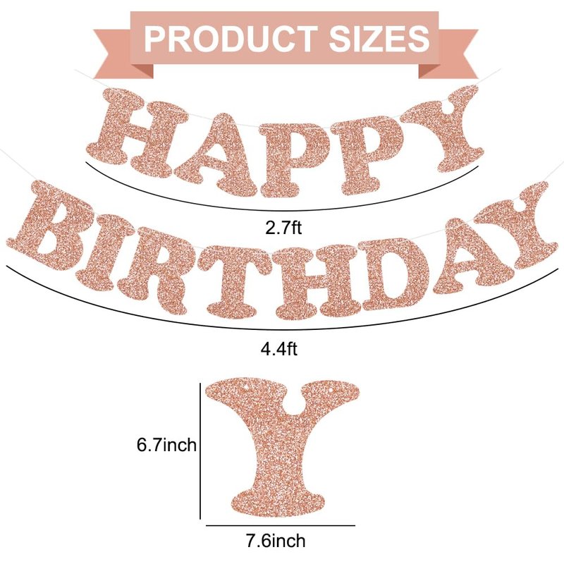 - Great meaning: Our Rose Gold glitter birthday banners is a perfect choice for leaving everyone the wonderful memories! Our high quality and amazing birthday decorations items can make your party become an unforgettable moment for your kids, yourself, family and friends.