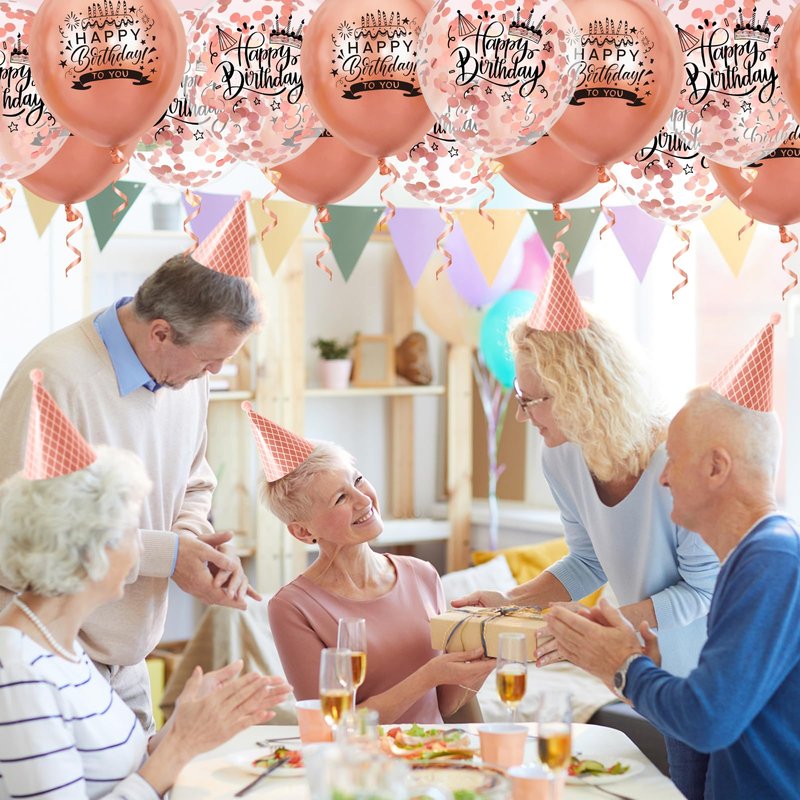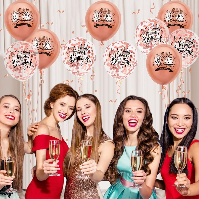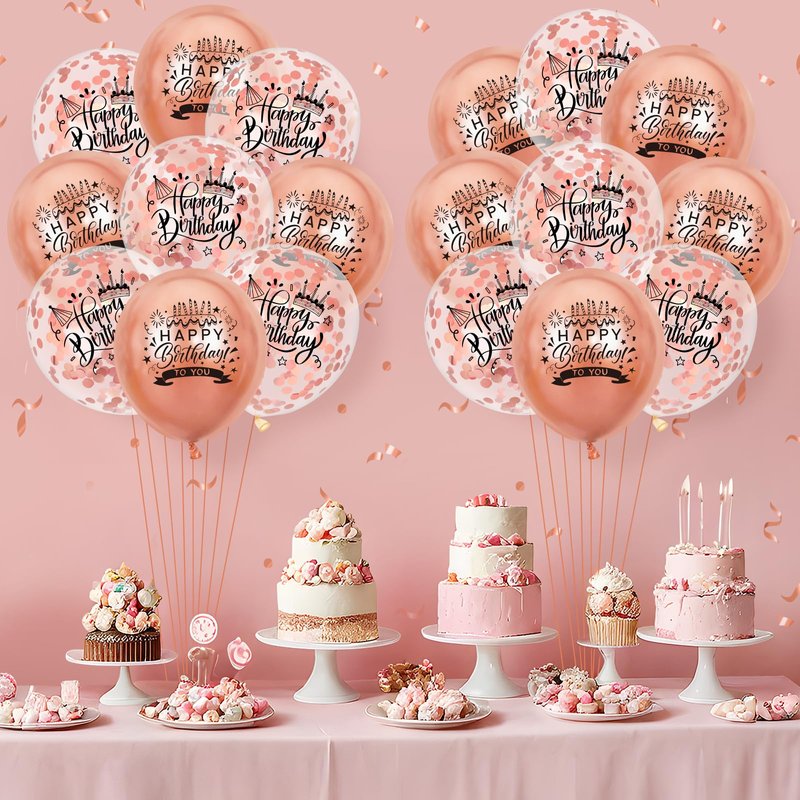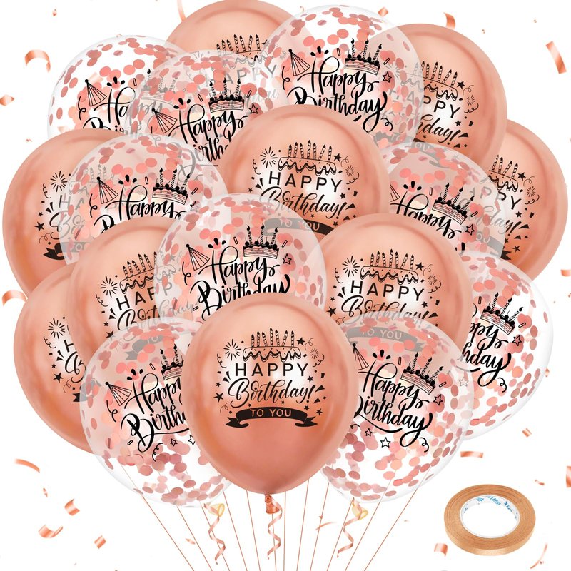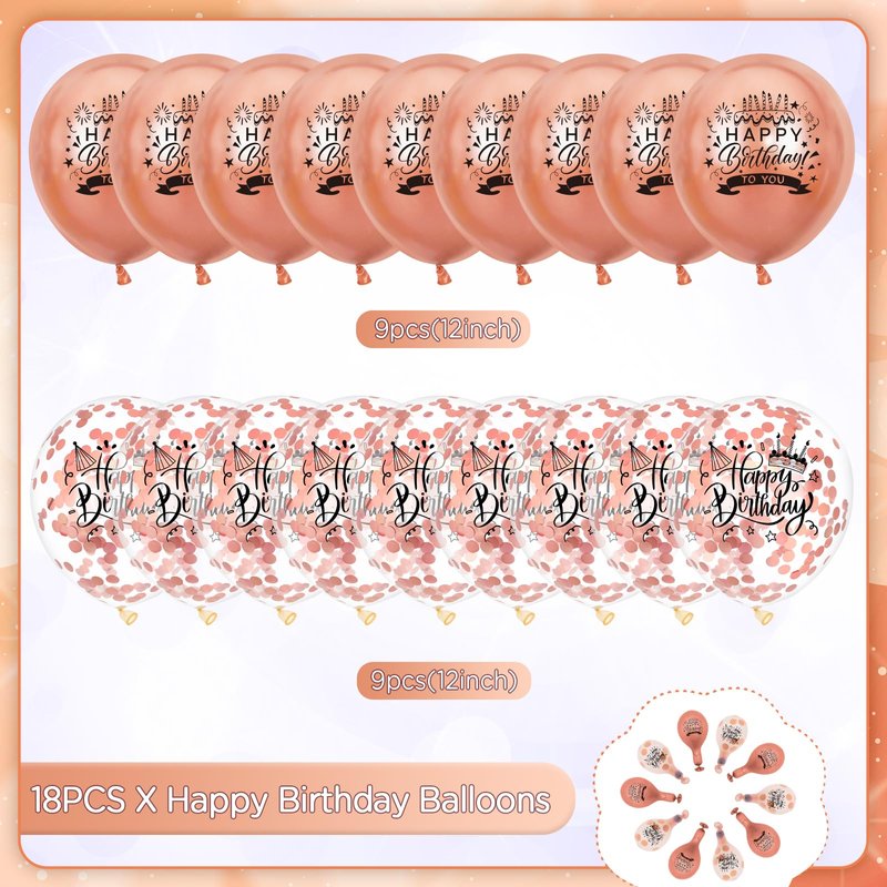 - 【Package List】 You will receive 18pcs rose gold metallic happy birthday balloons, including 9pcs rose gold balloons, 9pcs rose gold confetti balloons and 1pc ribbon.