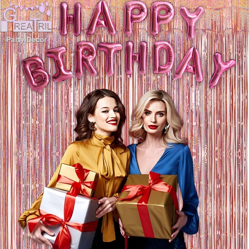 - Tips: You can match other decorations, such as rose gold foil fringe curtains with rose gold red tinsel curtain, rose gold banner or happy birthdays banner, etc. We believe this combination will definitely create a very beautiful party.