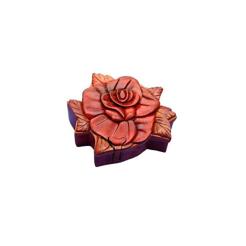 Rose Handmade Carved Wood Intarsia Puzzle Box by The Handcrafted