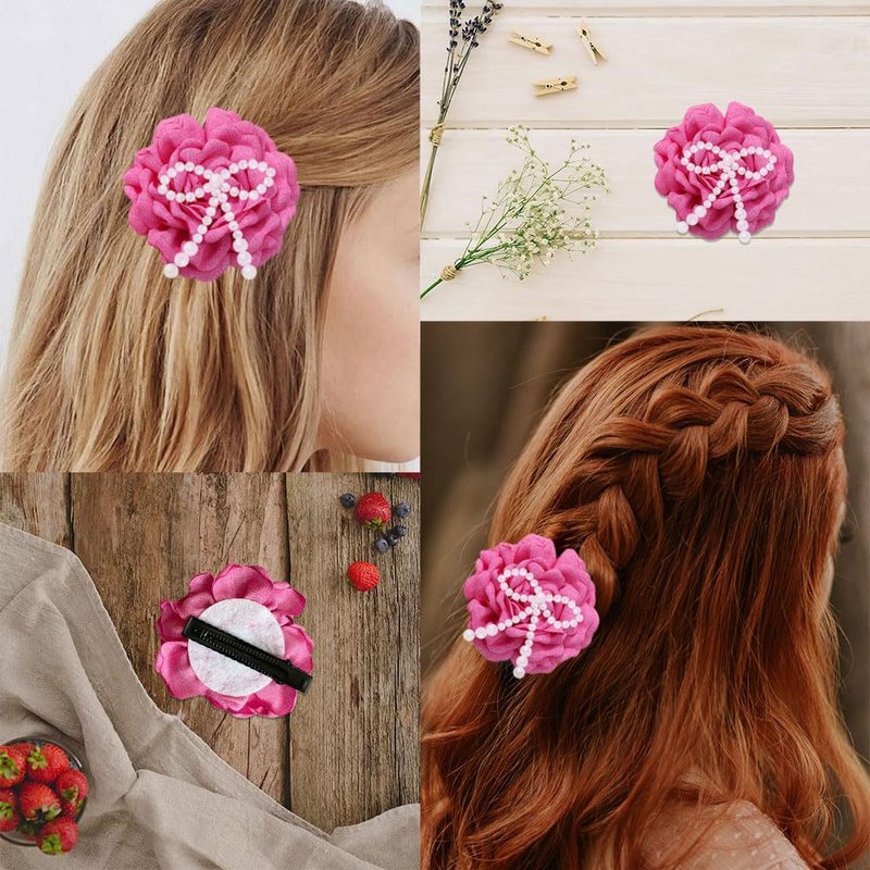 - Rose red flower bow hair clip is very beautiful, full of romantic atmosphere.