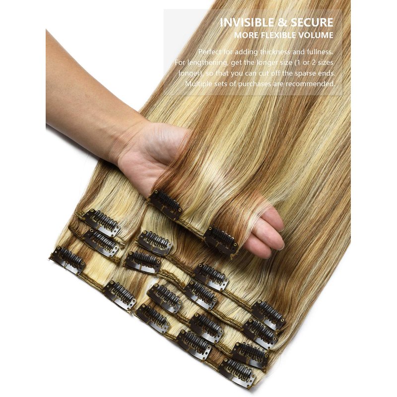 - Well Blend & Look Natural, Easy To Care ◆ Naturally attach to your natural hair, and can be cut, washed and dried like your own hair, perfect for adding thickness and fullness. For lengthening, get the longer size, change your look in seconds. Our clip on hair extensions use invisible snap clips to ensure easily use, which means you can put in and take out in a hurry by yourself.