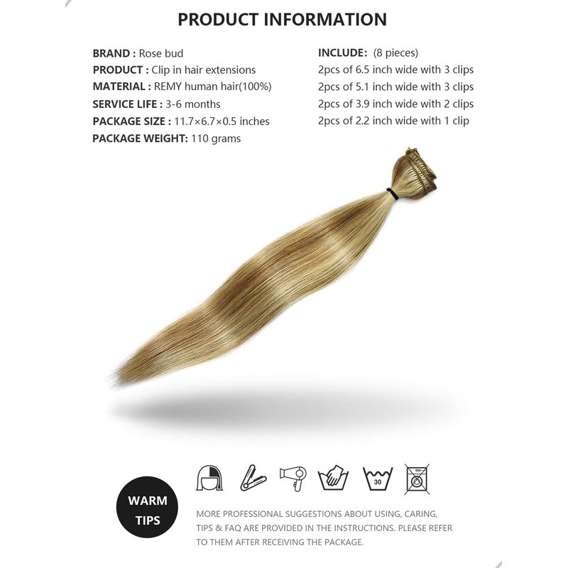- 100% Satisfaction Clip In Extensions ◆ The extra clips are given away, ROSEBUD concern everything you would meet. There may have color differences because of monitors.To ensure color match, you can Email pictures taken in outdoor natural lights to us before purchase, for asking which exact color fits you better.