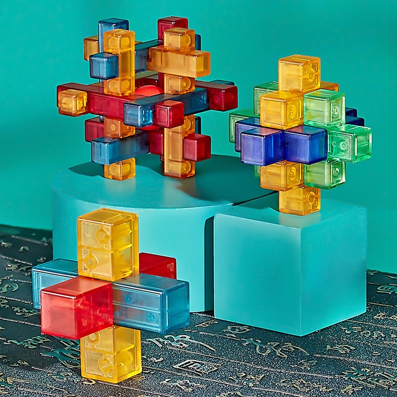 - Delicate Decoration - Brain teaser puzzles use the new color scheme. The bright crystal clear color is more attractive, It looks like a pleasing artwork. It is obviously different from the single color traditional wooden puzzle. This one is so attractive that it can easily be used as a decoration in a den, family room, living room, working table, office or waiting room.