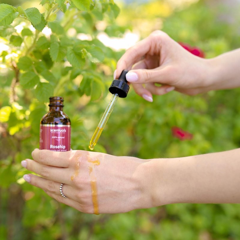 ntroducing Scentuals Face Oil (Rosehip), a meticulously crafted blend of enriching natural ingredients, including the nourishing properties of rosehip oil, grapeseed oil, apricot oil, safflower oil, and vitamin E. This thoughtfully curated combination is designed to nourish and rejuvenate your skin, providing a lightweight yet powerful formula that replenishes and locks in moisture for a soft and supple feel. Our commitment to quality and purity is evident in every drop of this face oil. Rosehip oil, celebrated for promoting a healthy complexion, joins forces with grapeseed oil, apricot oil, safflower oil, and vitamin E to create a harmonious blend that enhances your natural glow. These ingredients work together to provide a holistic skincare experience, leaving your skin feeling revitalized and radiant. Beyond facial care, Scentuals Face Oil is versatile and seamlessly integrates into your skincare routine. Additionally, it can be applied to your hair, offering an extra layer of nourishment for a comprehensive beauty ritual. As you indulge your senses in the soothing aroma of rosehip, rest assured that our commitment to premium, natural ingredients shines through. Elevate your skincare routine to a sensory delight and experience the transformative power of nature with Scentuals Face Oil (Rosehip), where each ingredient contributes to a radiant and revitalized you.