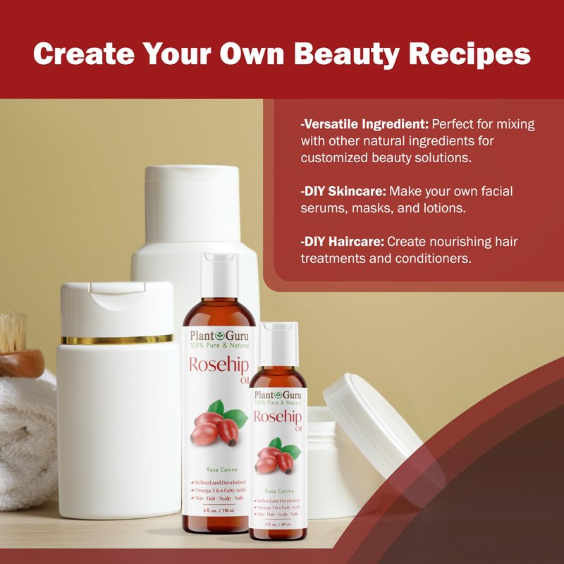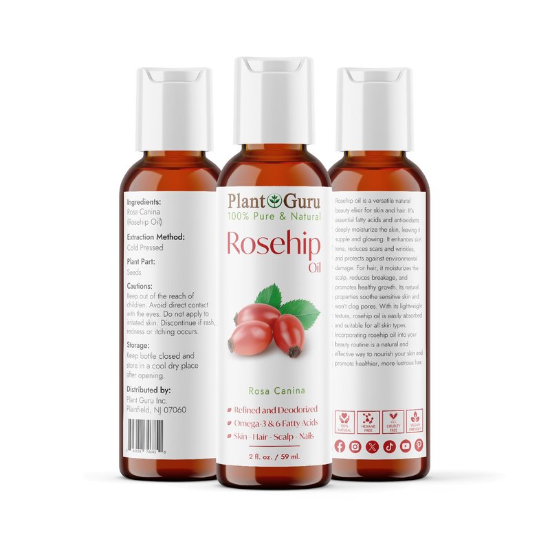 Rosehip Oil 2 oz. Refined and Deodorized 100% Pure Natural - Skin, Body And Face. Great for Hair Growth & More!