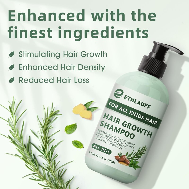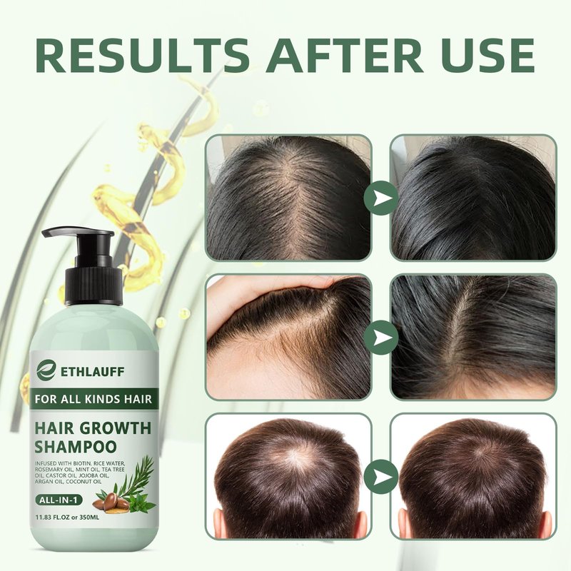 - ✔️Natural Ingredients: Our hair growth shampoo is made from natural ingredients like Rosemary, Peppermint , and Biotin, this shampoo ensures no damage to the scalp while promoting hair growth and preventing hair loss.Enhanced Hair Growth and Thickness. Making it ideal for both men and women seeking effective hair regrowth solutions.