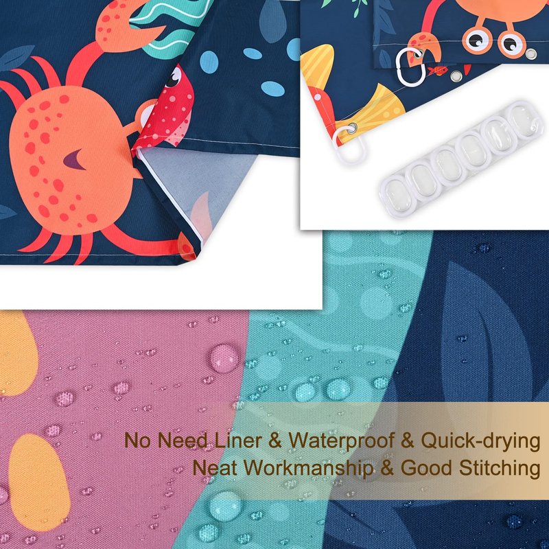 - Unique Cartoon Ocean Animal Graphic Design: The ocean shower curtain in Ocean Animal print is suitable for any type of bathroom furniture. Creative and unique patterns make you enjoy your bath time. Standard 72''*72''size fits Most.