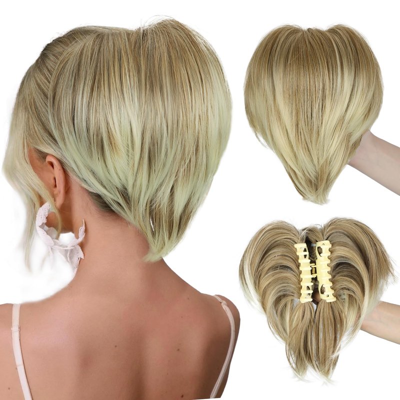- [Easy to Use] Create a natural hairstyle in seconds by tying your own hair into a small bun or short ponytail, then securing the straight claw clip ponytail extension. Perfect for short, thin, or fine hair types, this clip is not recommended for long or thick hair for a secure fit that lasts all day.