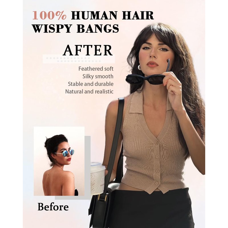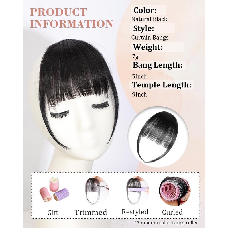 - 3. Key Features: Made from high-quality 100% human hair, these bangs can be styled, permed, and dyed to suit your preferences.You can do not trime your own hair and still have a bangs hairstyle.