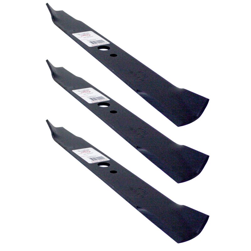 This is a set of 3 Part # 10094, an Aftermarket Replacement Lawn Mower Blade by Rotary Corp. This Aftermarket Lawn Mower Blade has a cutting length of 18 9/64", Width of 2", Center Hole of 3/4", and a thickness of 0.2040". This Aftermarket Lawn Mower Blade was designed by Rotary Corp to be used as a replacement for the following Part Numbers: SIMPLICITY / ALLIS CHALMERS: 1708229, 1708229AS, 1716697ASM, 1726453A, 1726453BZ, 1726453BZYP, 1726453YP, SNAPPER / KEES: 1716697ASM, 1726357, 1726357A, 1726357ASM, 1726453, 1726453A, 1726453BZ, 1726453BZYP, 1726453YP, for use on Large Frame Tractors equipped with a 50" Cut Deck.