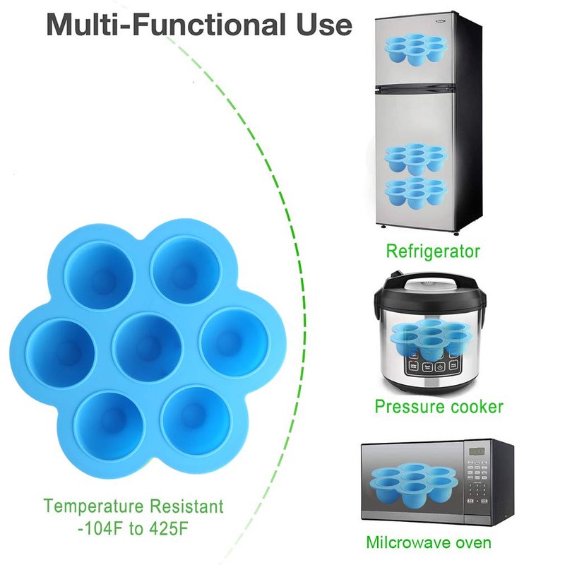 - 【Egg Bites Molds 】 Perfect Egg Bites Molds to make your own egg bites, new healthy breakfast for all your family. 7 individual portions can put various foods. Lid keeps frozen food fresh longer. Make egg bites, poacher ring, brownies, popsicles, baby food, yogurt with egg bites mold.