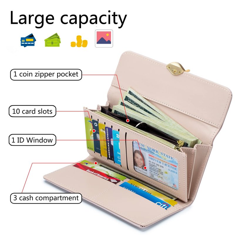- 🔐RFID Blocking Credit Card Holder - We make this possible for you by fitting each one of our wallets with an RFID blocking feature. This ensures that no unauthorized persons can sniff around your wallet and steal your personal information to use against you.If you have any problem with RFID wallet women, please feel free to contact us, we can offer best solution for you(Exchange, Refund, etc).