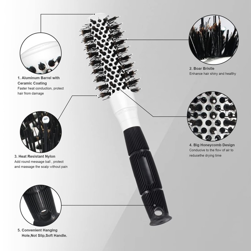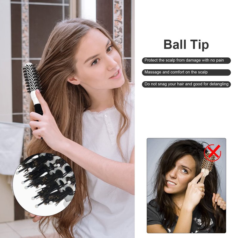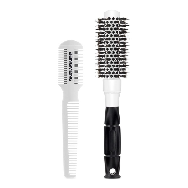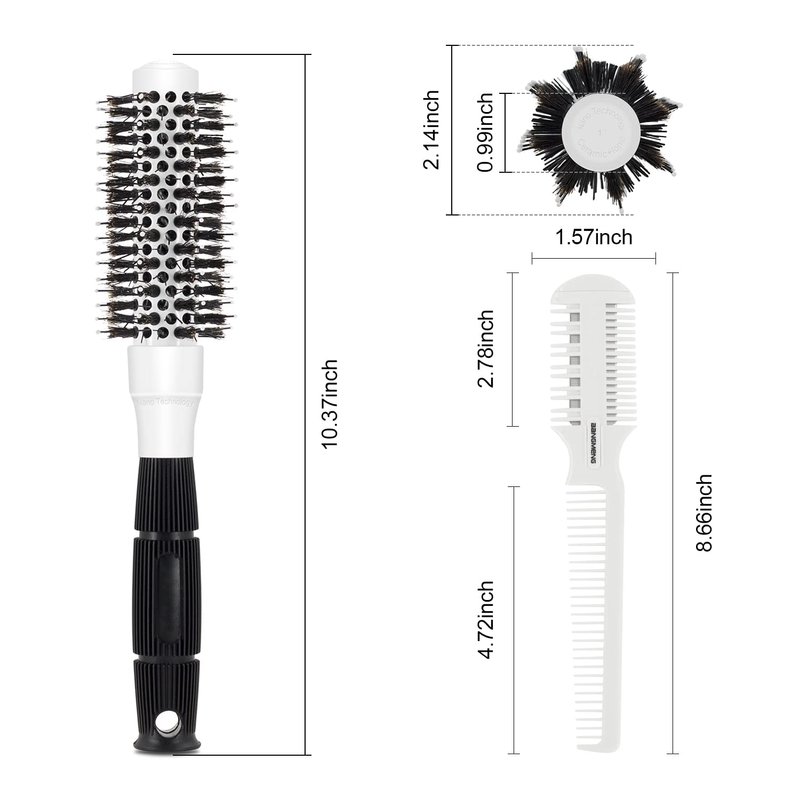 Round Brush for Blow Drying, 1 inch Small Round Barrel Hair Brushes with Ball Tip Boar Bristles, Nano Tech Thermal Ceramic Ionic, Double Edge Razor Comb for Hair Cutting Included