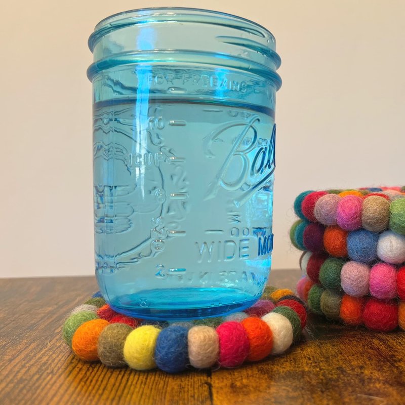 Round & Square Felt Ball Coasters - Hand Felted in Nepal - Multi-Color Set of 5 -100% Merino Wool - Water-Wicking, Stain-Resistant, Absorbent.