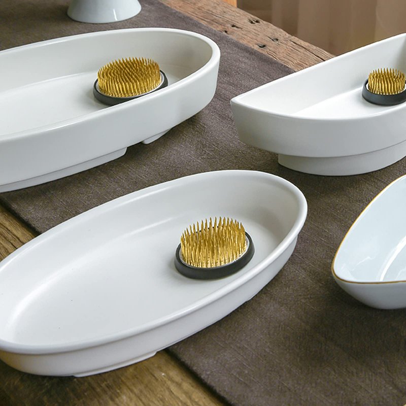 - 【Stable3 Base】Consisting of a heavy metal platform with silver pins for securing flowers, the high-quality silver pins are strong enough for woody material, as well as soft plants. The flower frog holder is built with a heavy metal base with spiky pins to hold stems in place, includes a rubber gasket which fits around the base to prevent scratches or damage to the vase.