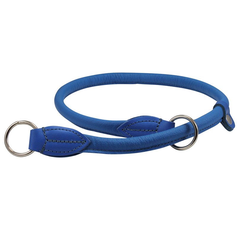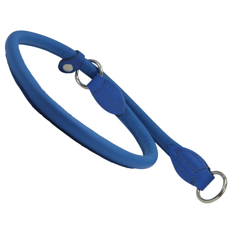 Round Genuine Rolled Leather Choke Dog Collar Blue (30" Long)