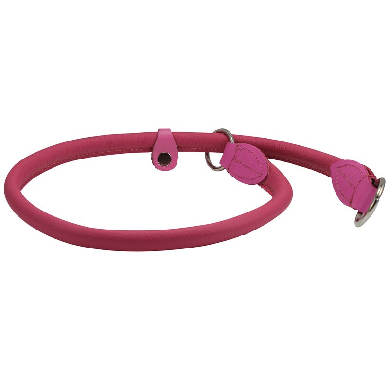 Round Genuine Rolled Leather Choke Dog Collar Pink (26" Long)