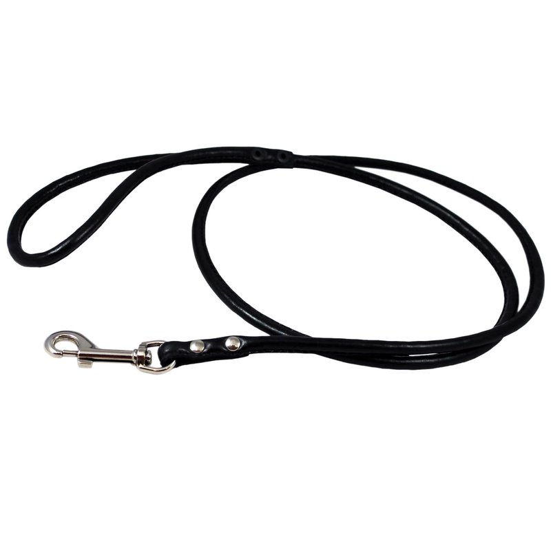 Round Genuine Rolled Leather Dog Leash 52" Long 3/8" Wide Black for Medium Breeds