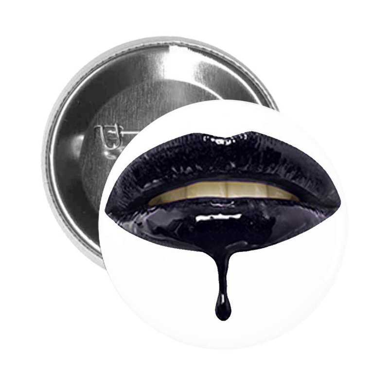 Round Pinback Button Brooch Shiny Dripping Lip Gloss ON Lips Black White (2.25" Inch)