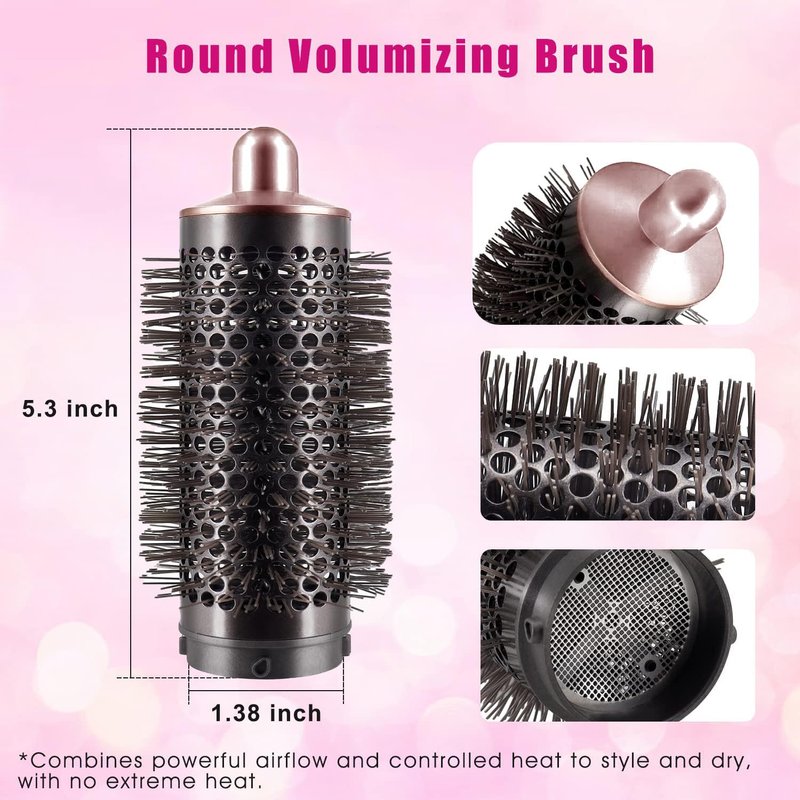 Round Volumizing Brush for Dyson Airwrap Styler HS01 HS05 Limp Flat Hair Volumizer Attachment Tool, Rose Gold