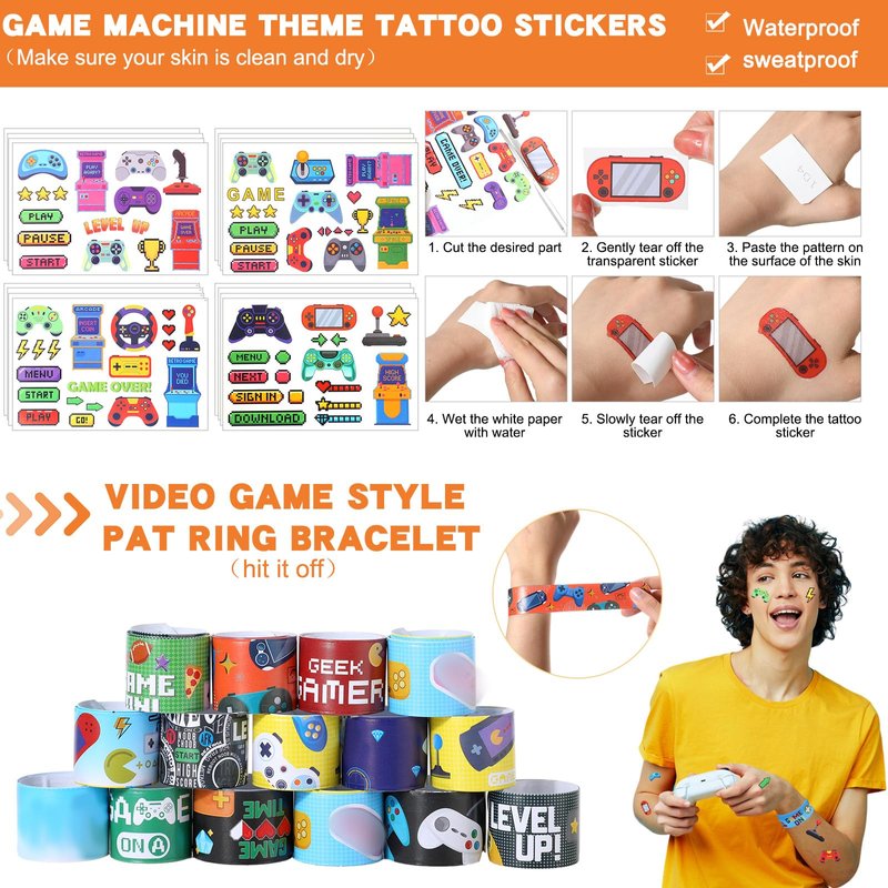- Quality Material: the gamer keychains, wristbands and rings are made of silicone, ensuring a comfortable fit; Our organza bags are made of mesh; Gift tags are made of quality Kraft card paper, making them durable and hard to tear, while our cool gaming stickers and tattoo stickers are made of waterproof adhesive; Each item boasts a clear and eye catching pattern, adding an extra layer of excitement to your events