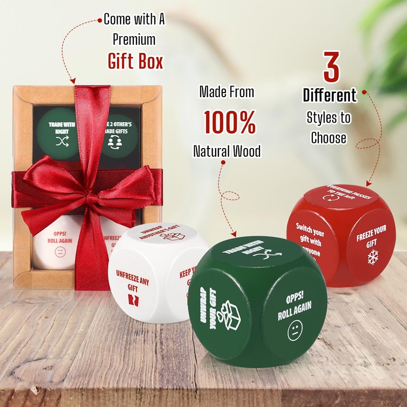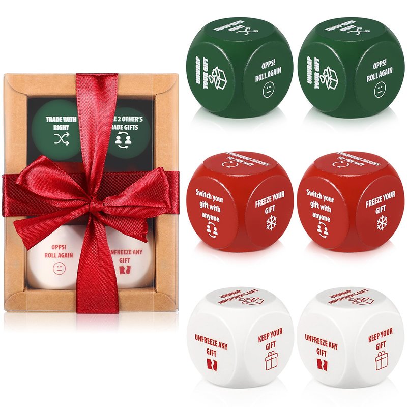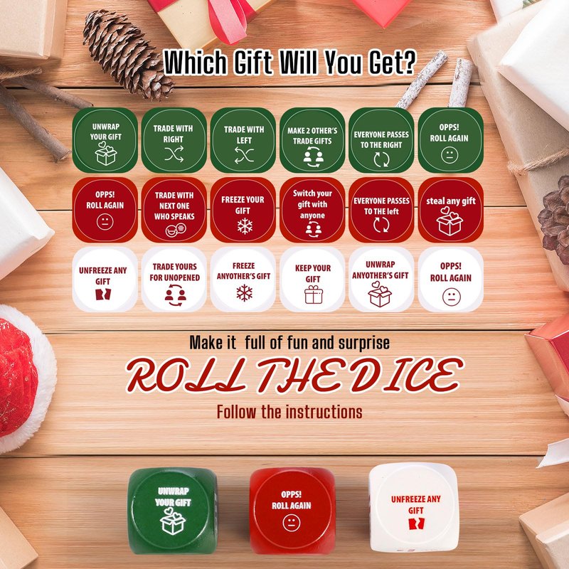 - Innovative Game Instructions: the Christmas gift exchange dice game is simple and fun; All the players form a circle, put the gifts in the center, and throw the dice in turn, and keep, pass or steal according to the instructions until all the gifts are all opened, bringing you and your friends a good time