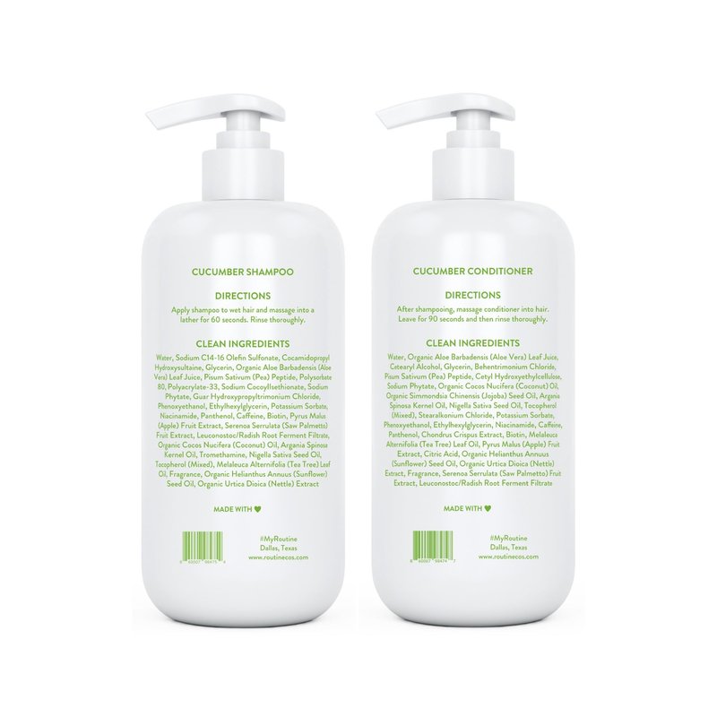 Routine Wellness Shampoo and Conditioner Set for Stronger Hair - Biotin | Color Safe | Sulfate-Free | Vegan | Clinically Tested | Nourishing Oils and Vitamins - Cucumber 14oz (Pack of 2)