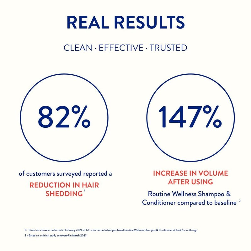 - CLINICAL RESULTS: Enriched with biotin and plant-based extracts and oils, Routine Wellness Shampoo & Conditioner have been clinically shown to strengthen hair by reducing breakage. Our Shampoo & Conditioner are also clinically shown to increase volume and reduce frizz.