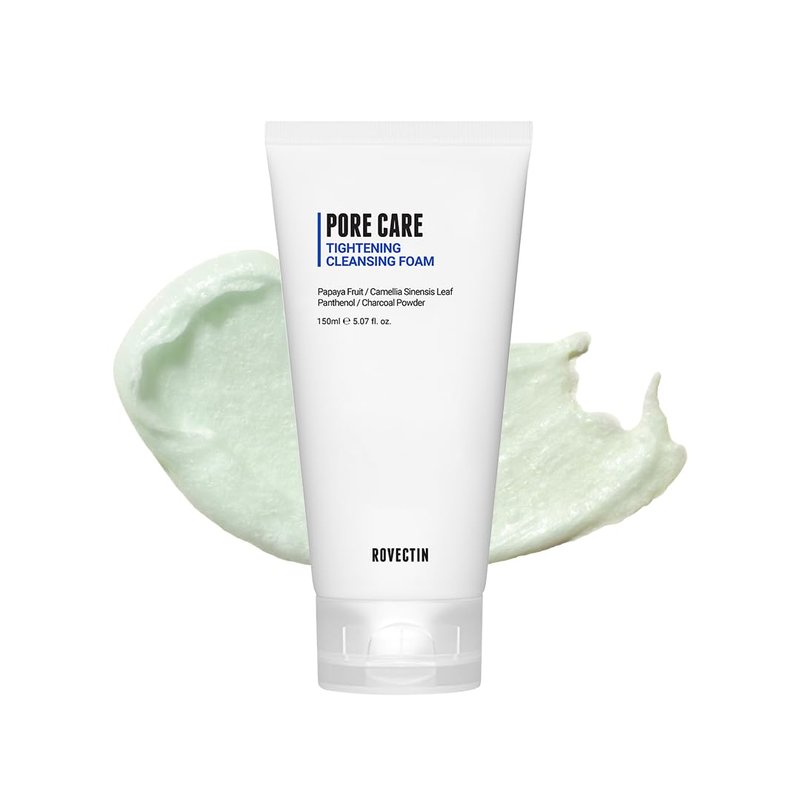 ROVECTIN Pore Tightening Cleansing Foam | Green Papaya, Glycerin, Charcoal Powder, AHA/BHA/PHA for Refining Pore Size, Non-Irritating | Oily, Dull Skin | Vegan (5.07 fl. oz.,150 ml)