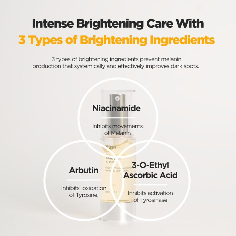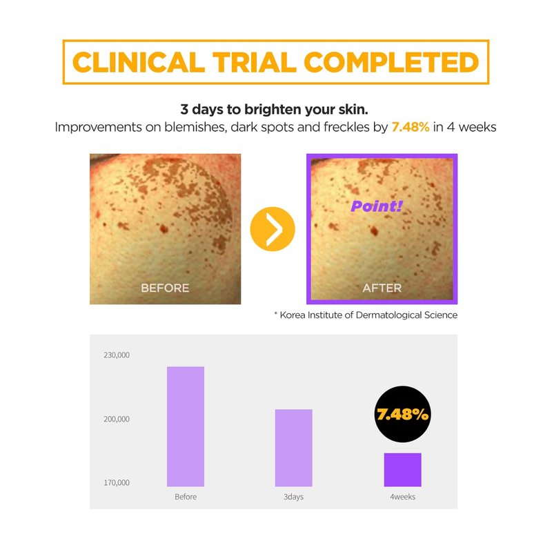 - Vegan And Dark spot Care Ampoule: Clinically proven to reduce the appearance of dark spots and blemishes by 6.76% in three days. 3 types of brightening ingredients prevent melanin production that systemically and effectively improves dark spots.