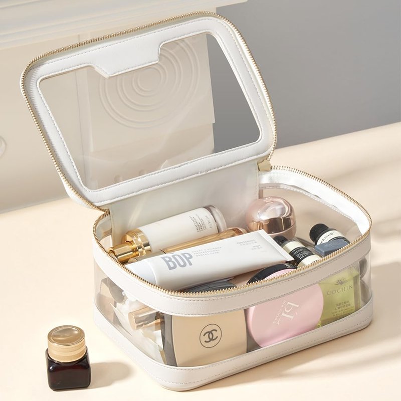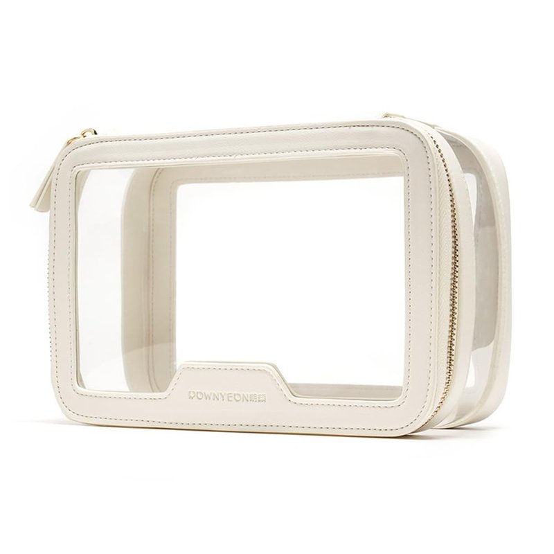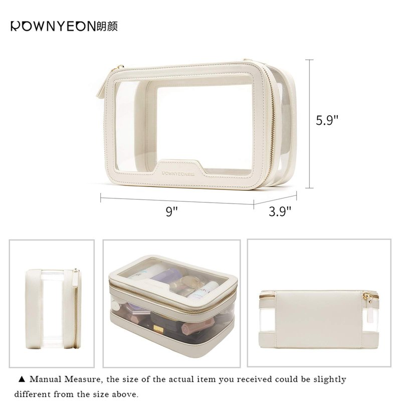 Rownyeon Clear Makeup Case Toiletry Bag Multipurpose Travel Makeup Train Case Portable Cosmetic Organizer Transparent Storage Bag White