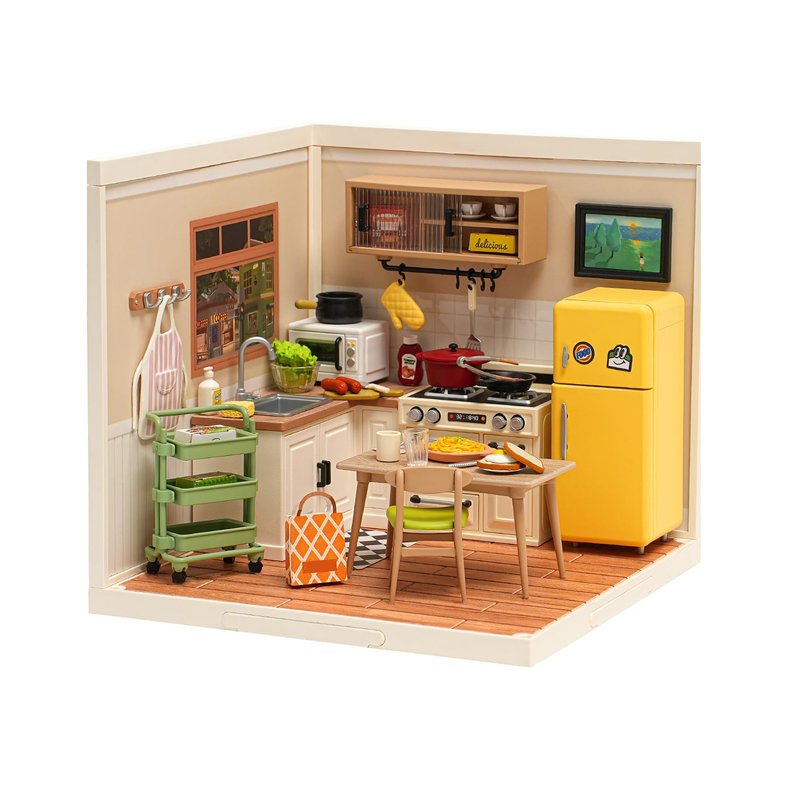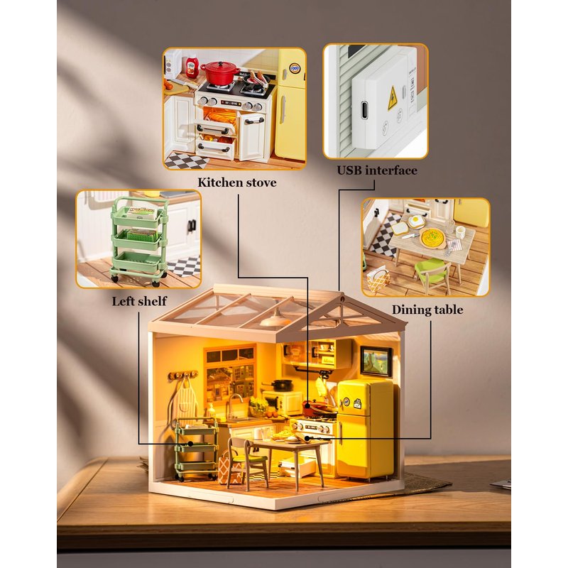 RoWood Miniature House Kit - DW008 Rowood Miniature House Kit,DIY Dollhouse Kit to build for Adults,Tiny Room with Mini Furniture,Adult Craft Kits Teen Girl Gifts on Birthday Christmas-Happy Meals Kitchen