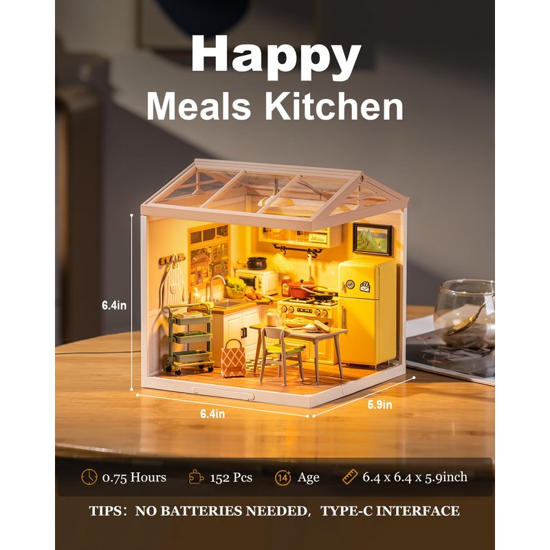 Rowood Miniature House Kit,DIY Plastic Mini Dollhouse Kit to Build for Adults,Adult Craft Kits Teen Girl Gifts on Birthday Christmas-Happy Meals Kitchen