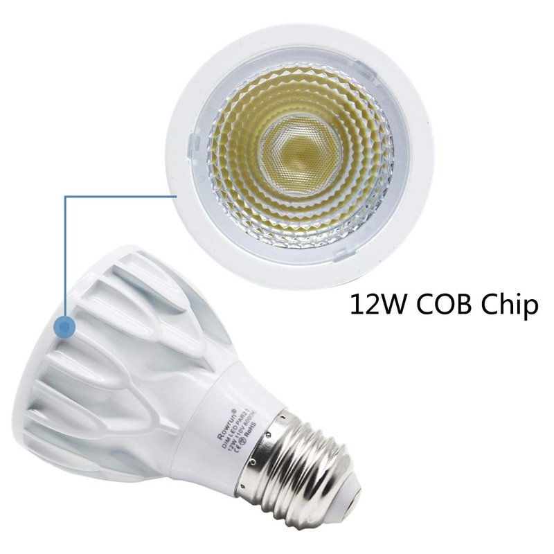 Rowrun PAR20 12W Narrow Flood Light Bulb E26 Dimmable LED Bulb Spotlight Beam Angle 24 Degree 100W Halogen 6000K Cold White 2-Pack