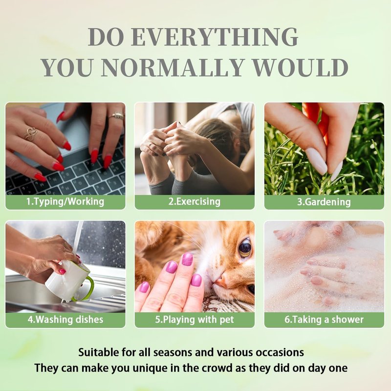2.Please note that the nail glue is not included.If you want it last for a longer time,please use nail glue instead of the nail stickers.