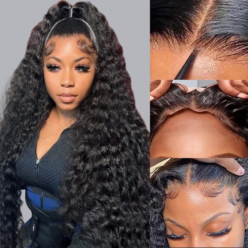 - Hair Material: 100% Virgin Human Hair Cut From Young Girl Donors, Deep Wave 4x4 Lace Closure Human Hair Wig,Pre Plucked Hairline with Baby Hair,Looks Realistic as your own hair.