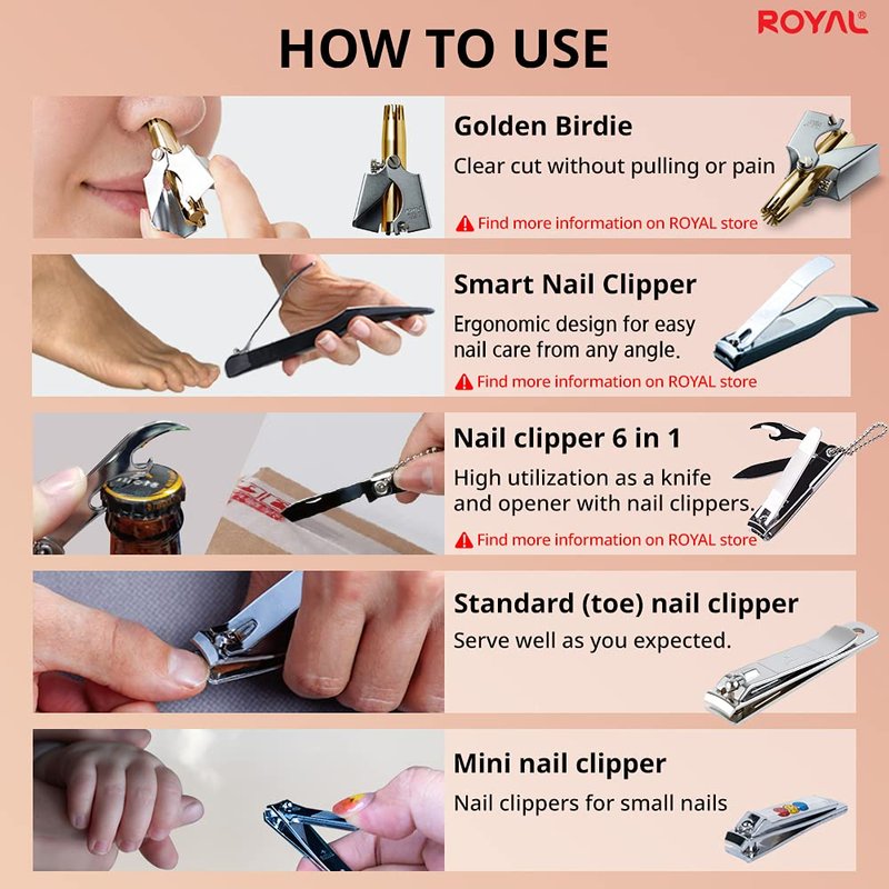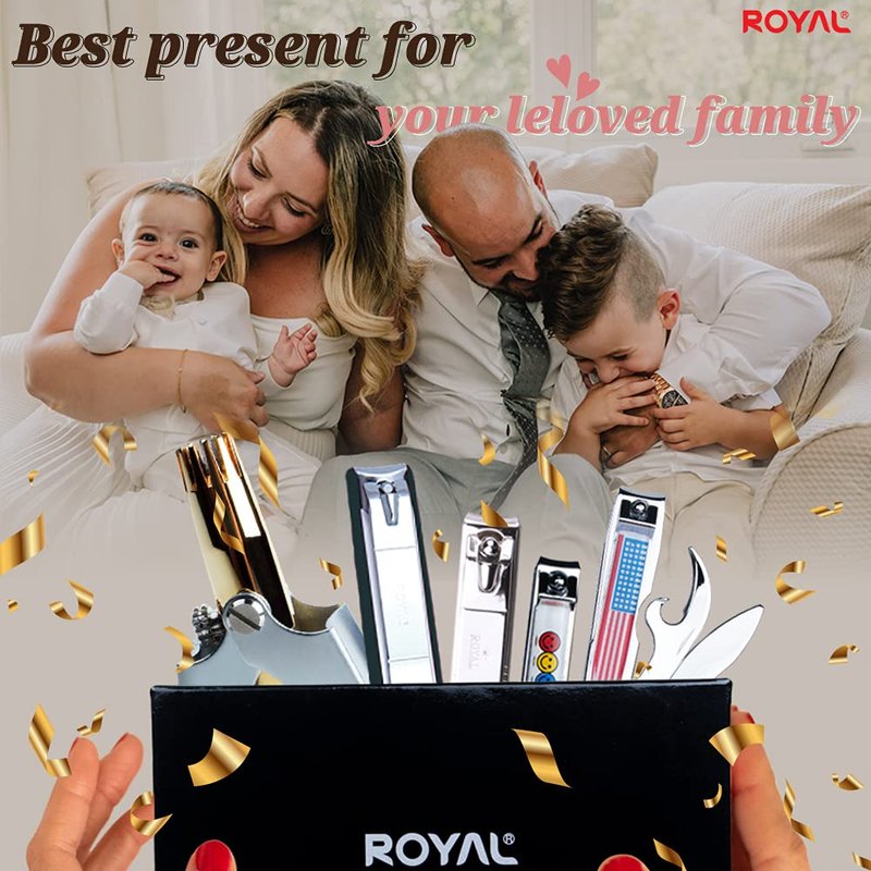 ROYAL [Made in Korea] NO Battery,5 Pcs Nose Hair Trimmer Set, Value Pack,(Nose Hair Trimmer with 4 Nail Clippers) The Best Gift for Family, (Gold&Black)