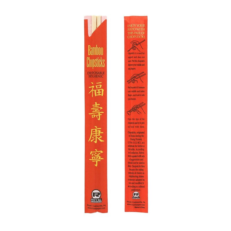 - PRACTICAL and STYLISH: Each pair of chopsticks comes in a purple paper sleeve. This attractive packaging features Chinese scripture reading "Good Luck, Long Life, and Well Being". The back of each sleeve has instructions on how to use the chopsticks- a perfect choice for restaurants and beginning users. The paper sleeve helps keep each pair together and ready to use. The sleeve can also provide a more sanitary dining experience, as restaurant staff never have to touch the chopsticks directly.