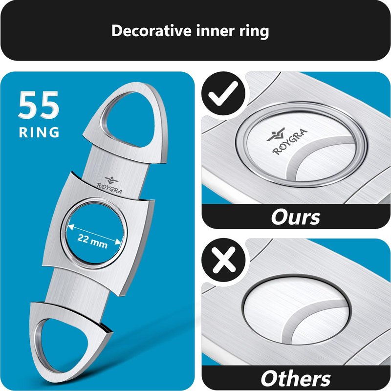 - SHARP, STRUDY & DURABLE - 55 ring conventional guillotine cigar cutter. With double blades, cuts neatly and clean.