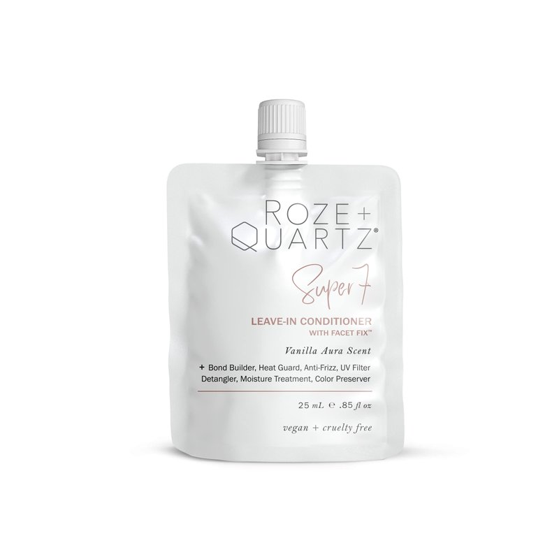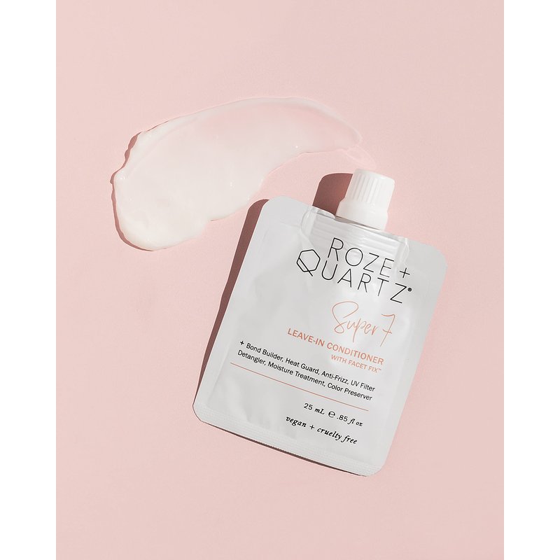 - Seven superpowers, with Facet Fix Patented Technology: The Roze + Quartz Super 7 Leave-In-Conditioner manifests 7 positive properties in 1 product. Hair Moisturizer, Anti Frizz, Detangler, Heat Guard, UV Filter, Color Preserver with patented Facet Fix Bond Builder.