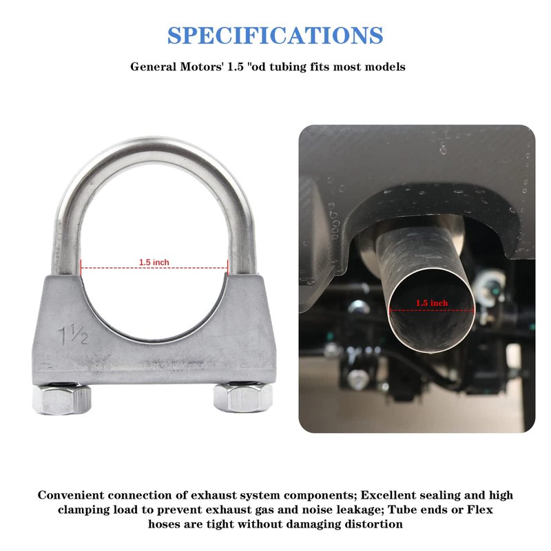 - 💠SIZE:1.5'' inside diameter, fits for 1.5'' OD pipe, 1 Piece of 100% Brand New U-Bolt Muffler/Exhaust Clamp.