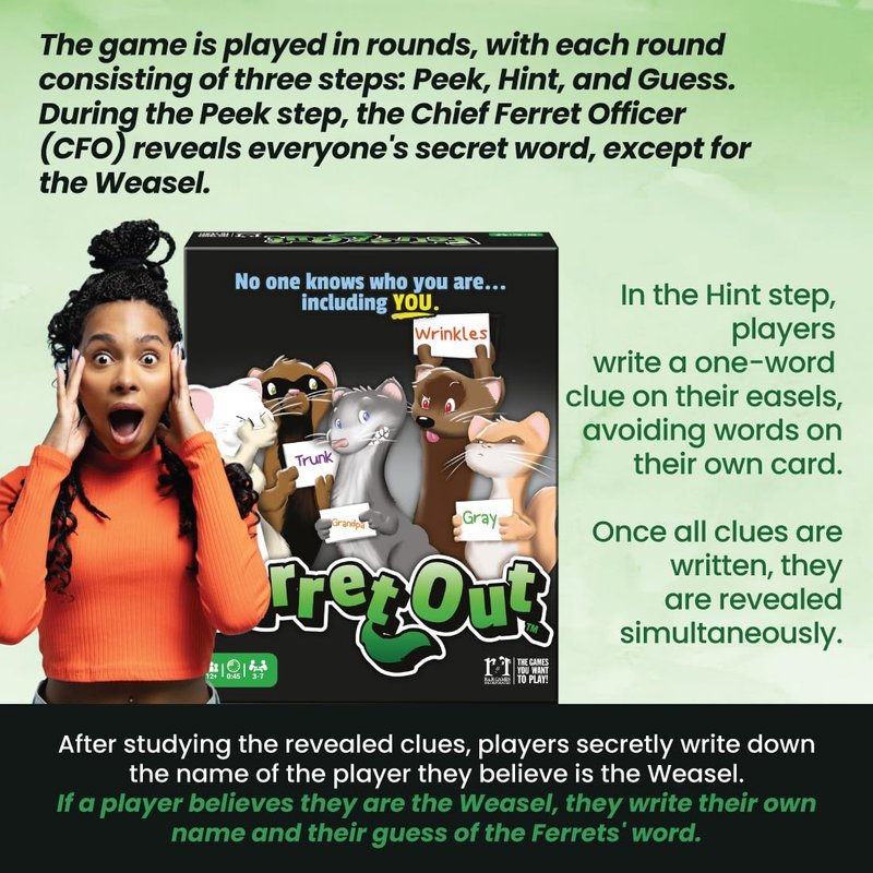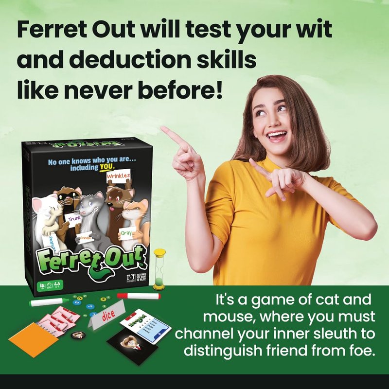 - Card Game: Ready to don the hat of a detective and catch the one who does not belong with you and your gang? Well, ready or not, that’s what you will have to do in R&R Games’ Ferret Out, one of the most unique card games you will ever come across.