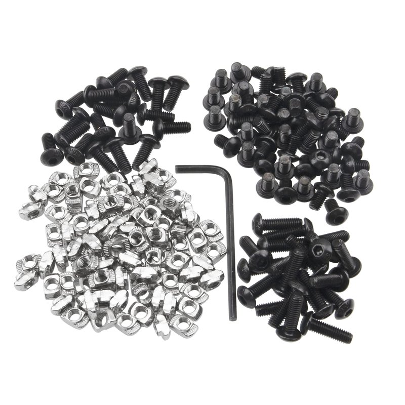 - PACKING QUANTITY: 90Pcs M5 T-Nuts; 50Pcs M5x8 screws; 20Pcs M5x12 screws; 20Pcs M5x16 screws; 1Pcs wrench.