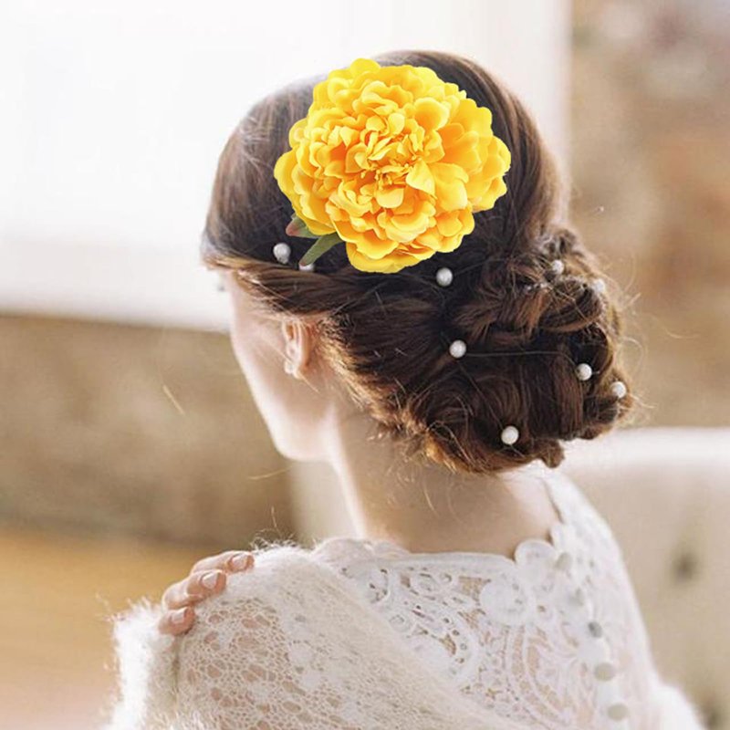 - You will get 3 colors Flowers clips, such as 1pcs Pink Peony Flower Hair Clip, 1pcs Red Hair Clip,1pcs Yellow Flower Hair Clip