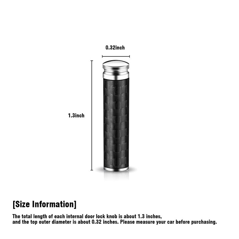 - [Size Information] The total length of each internal door lock knob is about 1.3 inches, and the top outer diameter is about 0.32 inches. Please measure your car before purchasing.