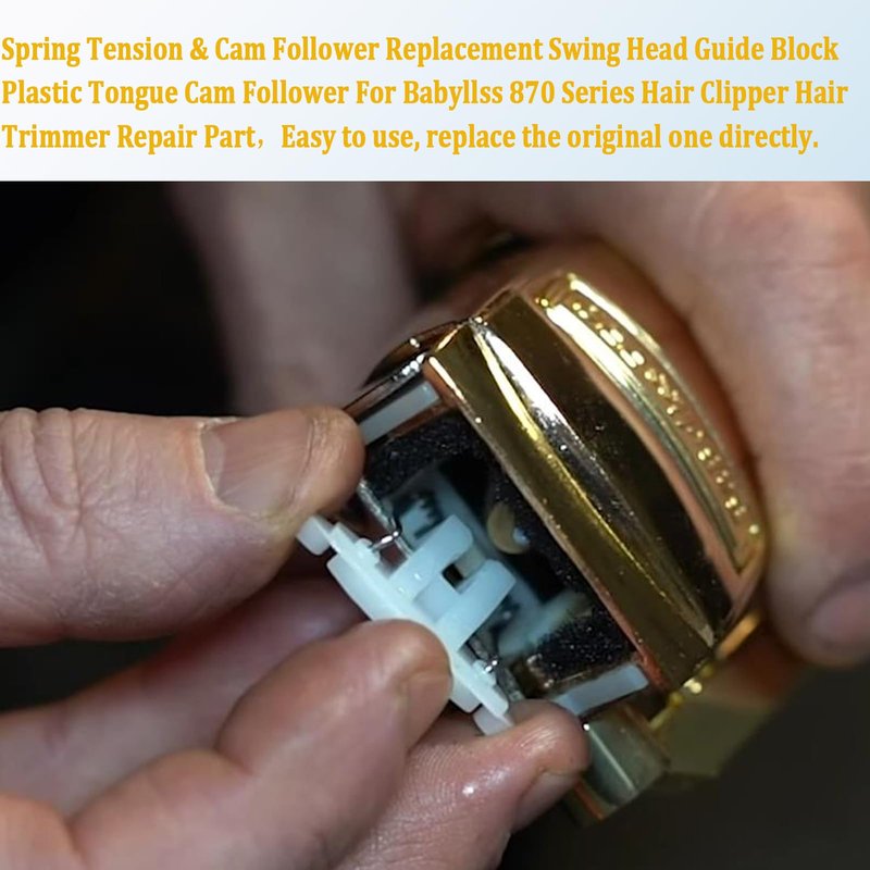 - 3. Spring Tension & Cam Follower Replacement Swing Head Guide Block Plastic Tongue Cam Follower For Babyllss 870 Series Hair Clipper Hair Trimmer Repair Part,Easy to use, replace the original one directly.