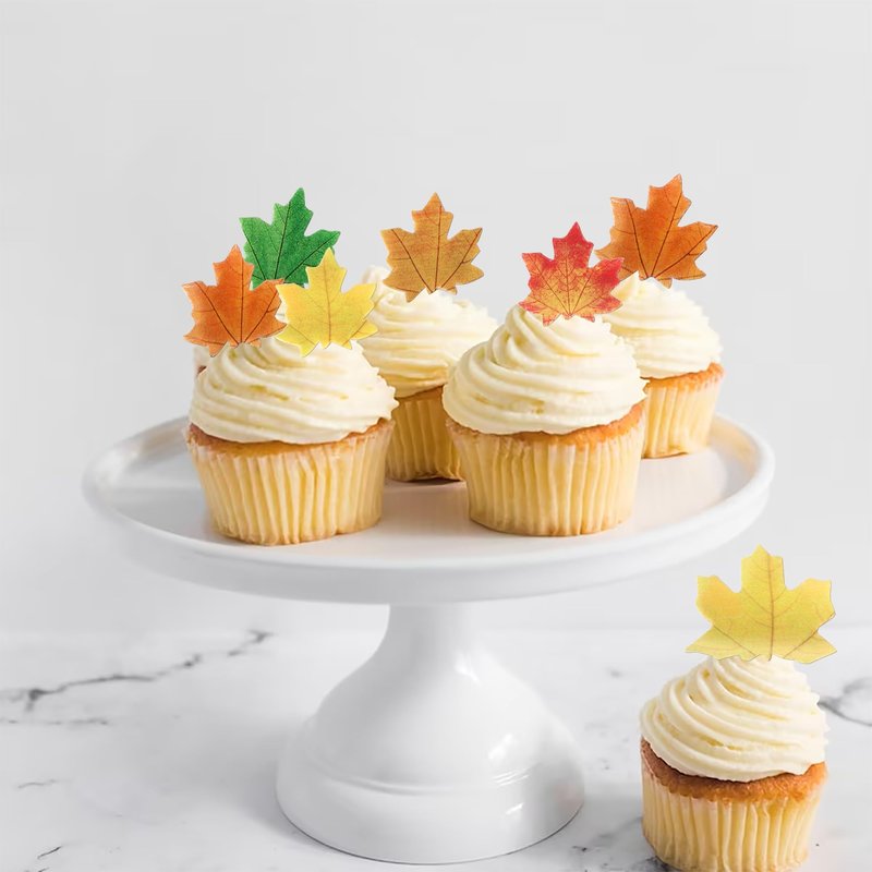 - Package and Size: Includes 111 Pack edible fall leaves cupcake toppers, these novel and cute cupcake picks will add more fun.The size is 1.4*1.4 / 1.8*1.5 inch ( including stick )